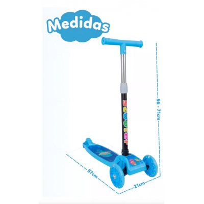 The 3 -wheeled children's scooter is the perfect choice to ensure moments of fun and safety for boys and girls. This scooter is folding, facilitating transportation anywhere. With a rubberized handlebar and security wheels on the front, it offers more stability and balance for the child during use.