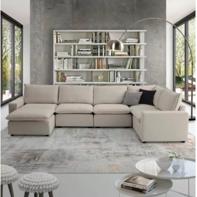 Hug 8 seats 423x213cm modular sofa with 1 puff in linen headwood