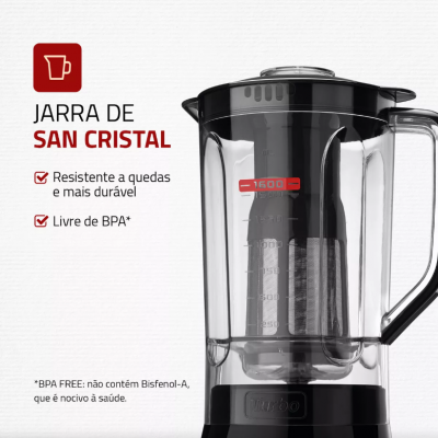 Sturdy Jar: The Mondial blender glass is made of San Crystal, material resistant to falls and risks, over -transparent and that does not smell or color.
