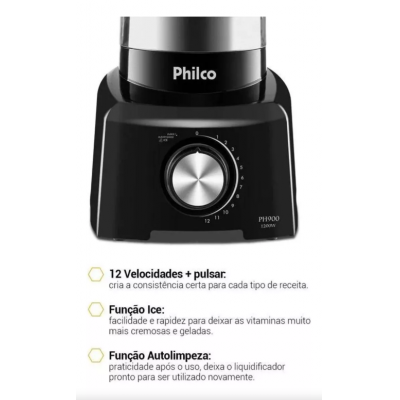 PH900 blender with 12 speeds and pulsating power of 1200W black color Philco 127V