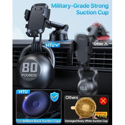 [Visão desobstruída] O suporte de telefone de carro atualizado Htu tem a junta esférica de 360 graus e o braço telescópico ajustável, para que o celular seja fácil de alcançar, navegação conveniente, atender chamadas. Não bloqueia sua visão enquanto dirige. Você pode se concentrar em dirigir, e o suporte de celular Htu fará o resto para você.