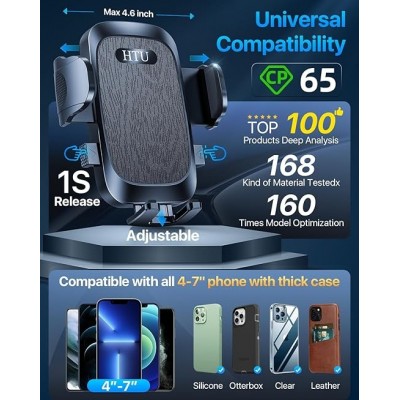 [Boa escolha: suporte de carro de alta qualidade confiável por mais de 2.500.000 usuários com mais de 15 anos] O suporte de telefone para carro Htu 2024 é certificado por todas as autoridades (Certificado internacional à prova de choque de grau militar, CP65, REACH, RoHS), com base no design exclusivo do Grandmaster (patente EUIPO), materiais duráveis e saudáveis de mais de 4.000 materiais e Indústria-Lei Testes de segurança ading (teste mensal de 5.000 + abertura/fechada; 10.000+ resistência à vibração; testes de estrada robusta de 100.000 km; teste de laboratório de -40.0 °C a 95.0 °C)